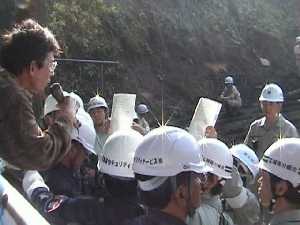 ●集会と「トラスト運動続行宣言」 3時までの集会では、森への思いとそれ以上にガードマンの若者たちへの呼びかけが語られました。私たちの運動の誇れるところだと思います。 「故郷」の歌声が森の隅々にまで流れる中、私たちは共有地をあとにしました。「必ずまた帰ってきて、また森にこの地を還すからね」想いは一つでした。 馬引沢には、数十人の仲間が待っていました。やれることはやったと言う思いと、なぜここまでなのかというやりきれなさに、幼子のように泣きじゃくる人。抱き合う人。しかし駆けつけた大橋共同代表のトラスト運動続行宣言、一日の闘いの報告と続く中で、今日の闘いを明日へつなげようという意思をはっきりと感じました。 |