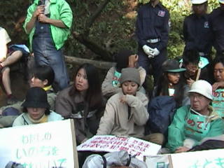| ●回答もなしに、何が「説得」か 執行官らが戻ったところをもう一度呼び戻し、申入書を手渡しました。趣旨は、@代執行では、明渡しは出来ないこと、A裁判で係争中なので、決定が出るまで待つように、との2点です。東京都に30分の期限で回答を要求しましたが、彼らが戻ったのは1時間以上たってからでした。 こちらからは再三にわたって話し合いを求めています。弁護士を含む代表三人がフェンスの外に出て、回答を聞くことにしました。しかし都は時間は三分間、回答も「答えられない」というふざけた態度に終始し、私たちと話し合う気は全くないことが解りました。都はマスコミなどには、説得活動を続けてきたなどと発表していますが、その中身は、「退去しろ」というだけで、説得でもなんでもありません。それともこれが行政の考える説得なのでしょうか。それなら、根拠も示さず安全宣言をするのも解ります。全く同じですから。 |